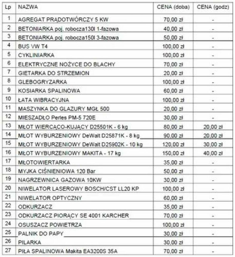 W y n a j e m m a s z y n i n a r z ę d z i b u d o w l a n y c h
