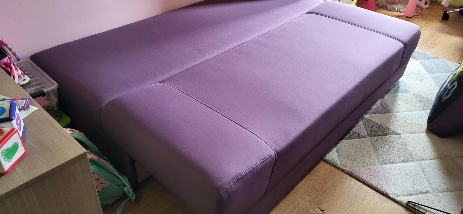 Grajewo ogłoszenia: Wygodna, rozkładana kanapa w fioletowym kolorze. Na poduszkach...