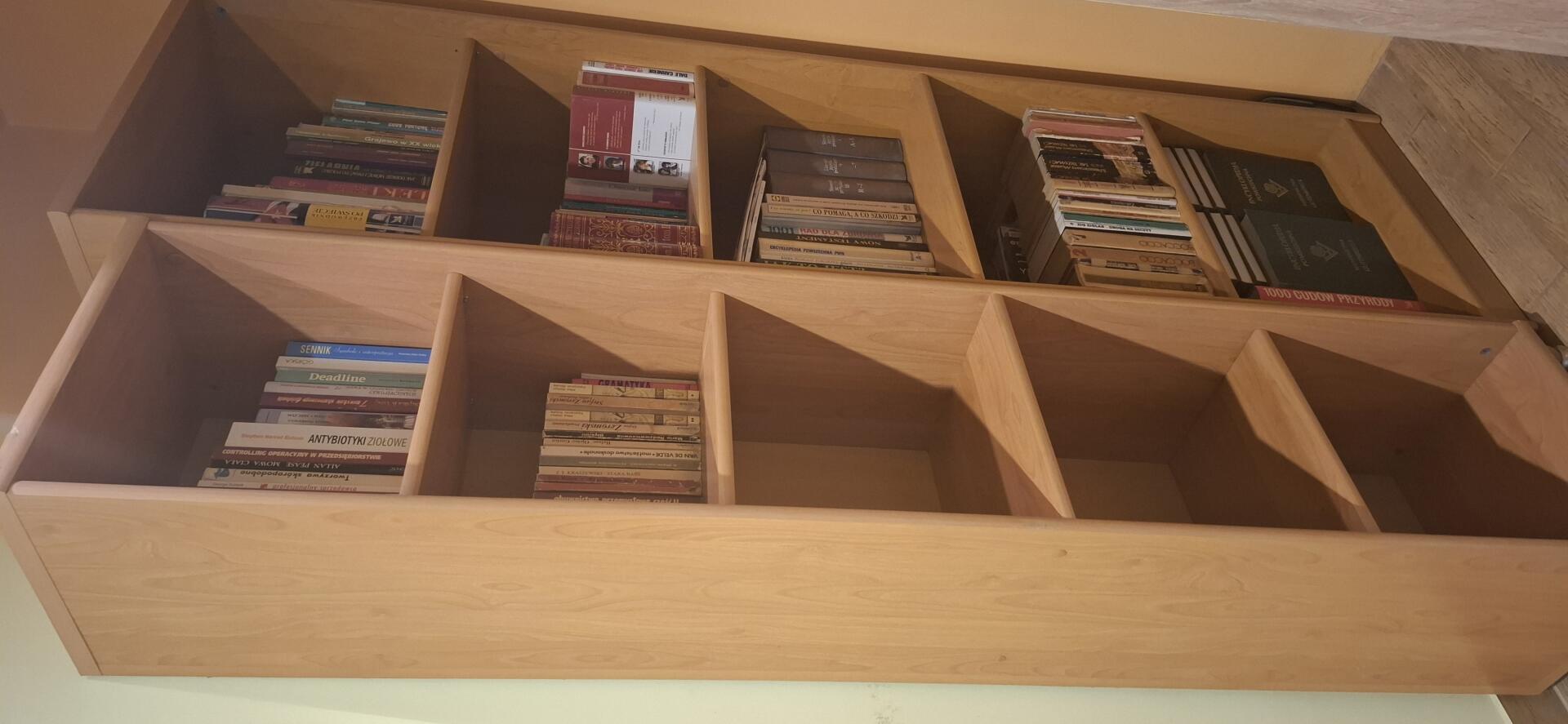 - 2 regały na książki ( 1/wym.1,90 ×0,40, głęb. 0,30 ; 2/ 2,00× 0,54, głęb. 0,29)